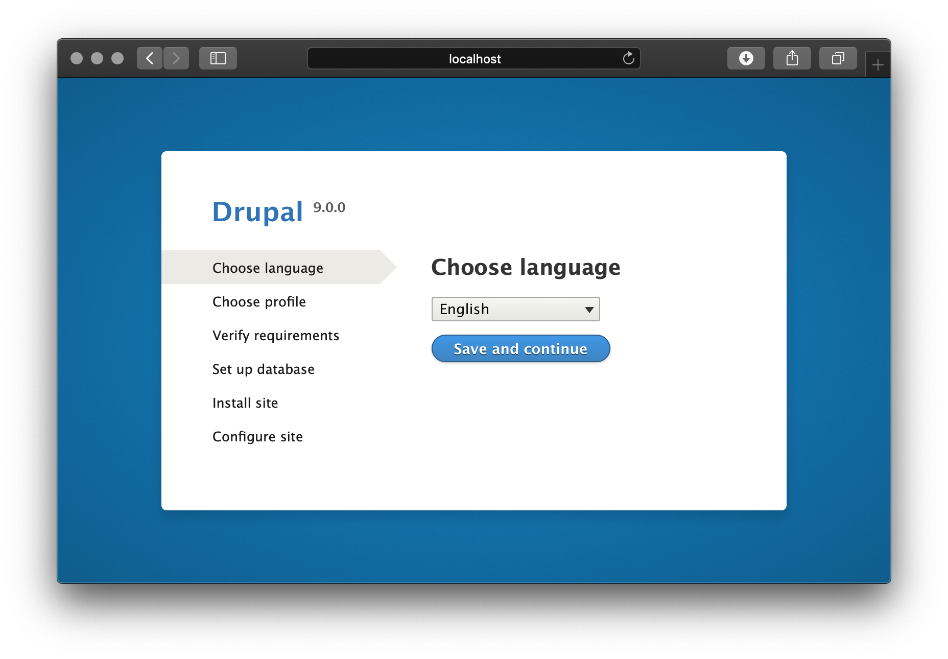 After a successful update, browse to http://localhost and set up your Drupal installation: