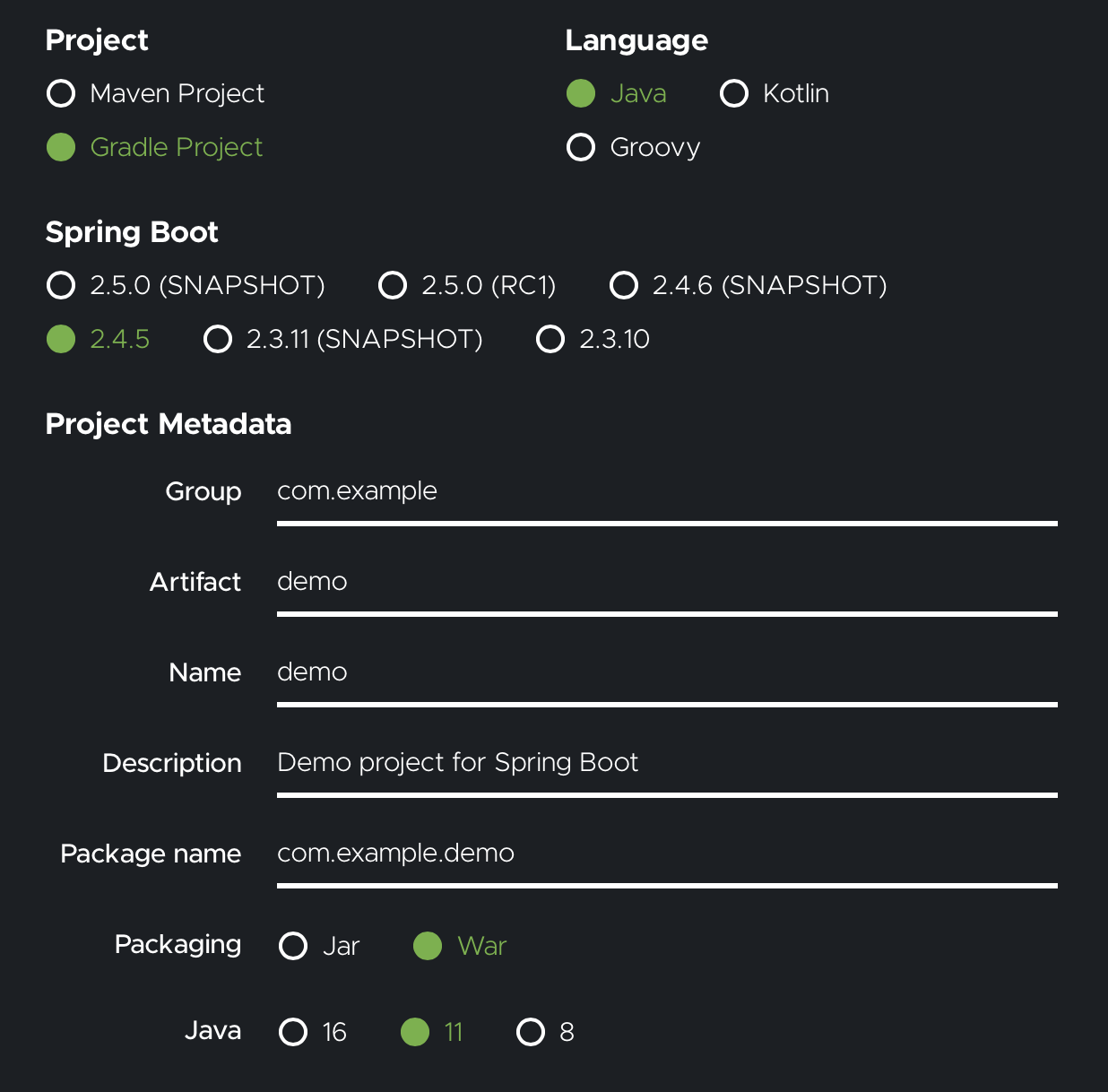 Create your Spring Boot project; we’ll use the quickstart example, creating it at https://start.spring.io: